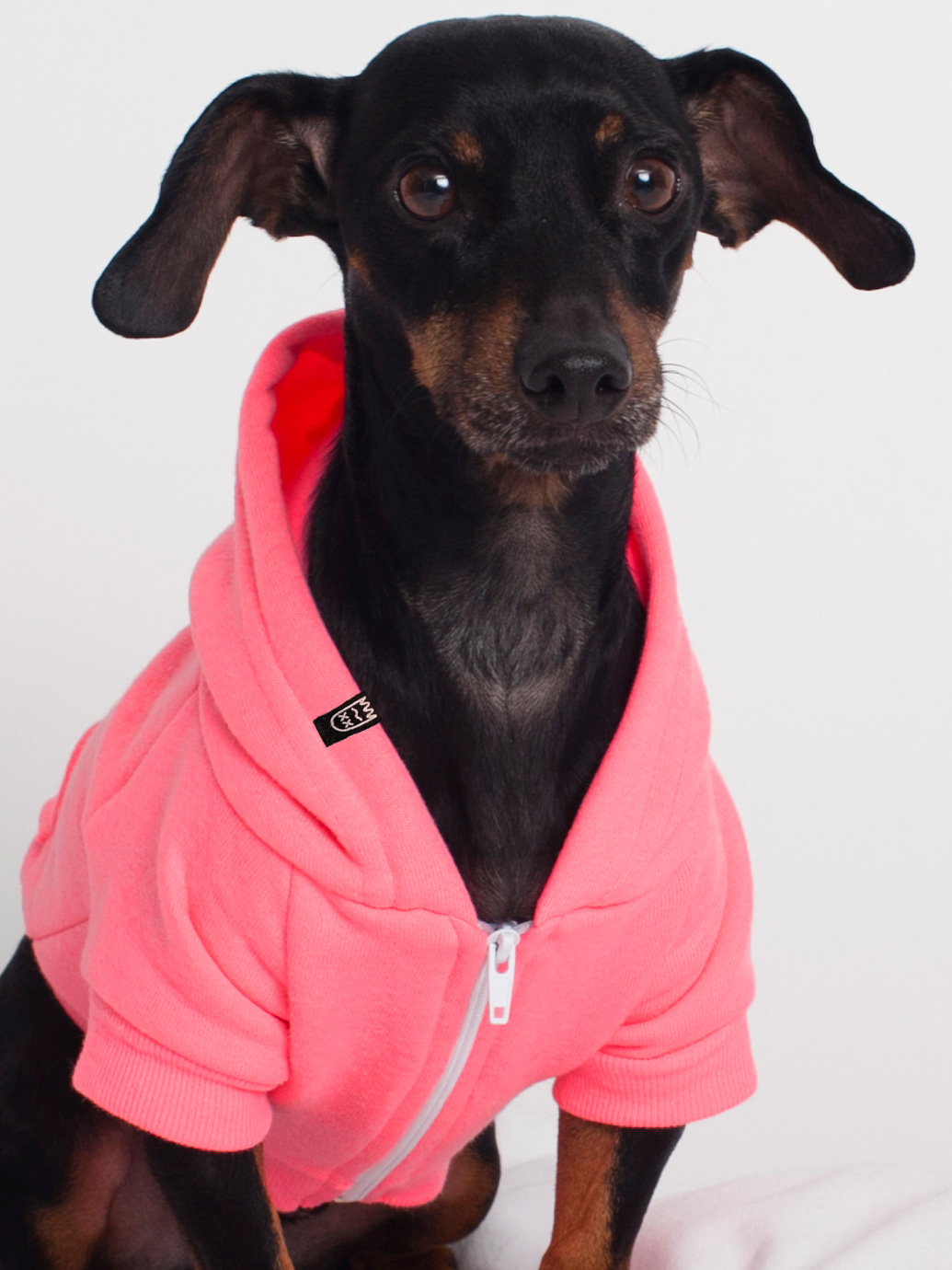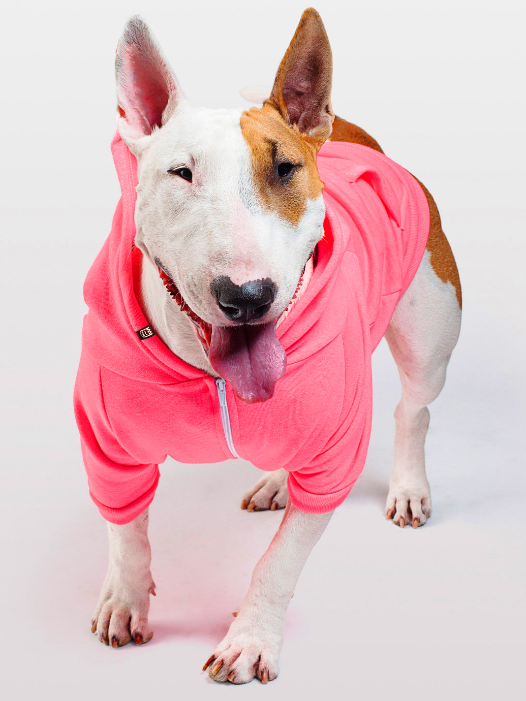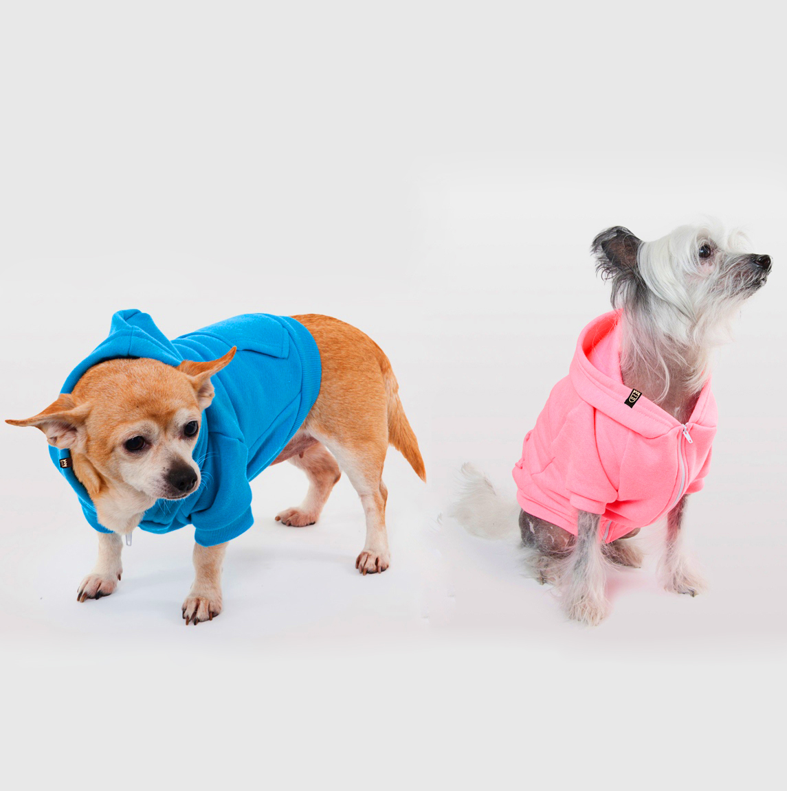 Made of Flex Fleece (50% Combed Cotton / 50% Polyester). Zipper enclosure. Kangaroo pocket and an opening for a leash clasp on the back.