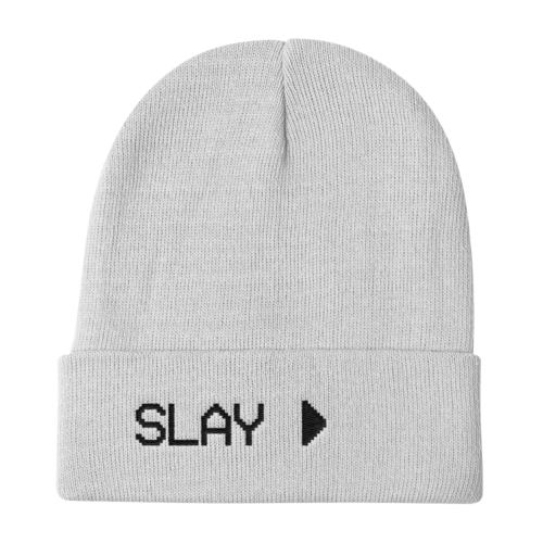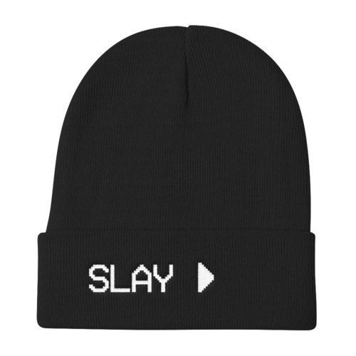 Knit cap with the embroidered "Slay" logo. 100% Acrylic. Black